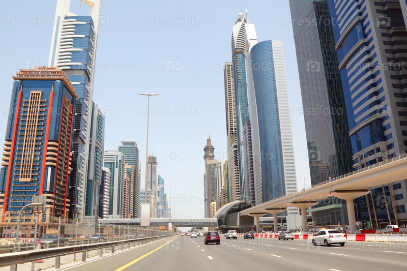 Небоскребы вдоль автомагистрали в Дубае