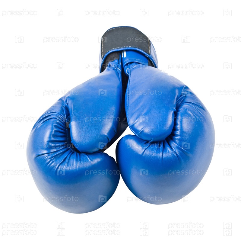 Синие боксерские перчатки на белом фоне