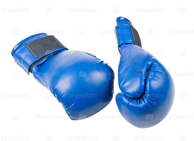 Синие боксерские перчатки на белом фоне