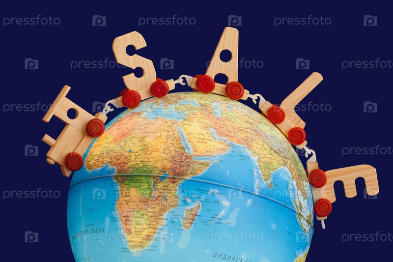 Игрушечный деревянный паровоз на глобусе