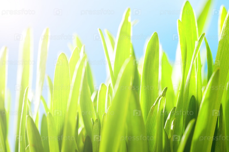 Зеленая трава, освещенная лучами солнца