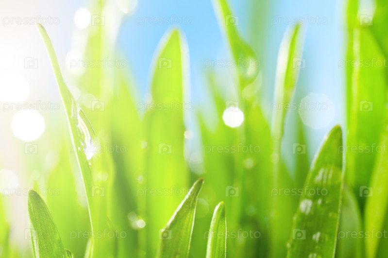 Зеленая трава, освещенная лучами солнца