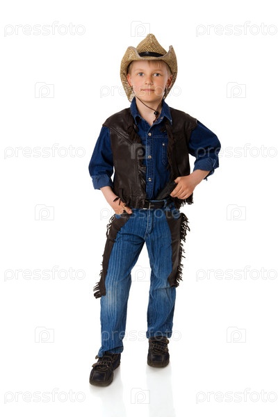 Мальчик в костюме ковбоя на белом фоне