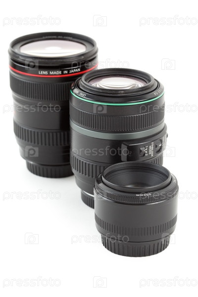 Три объектива к камере на белом фоне