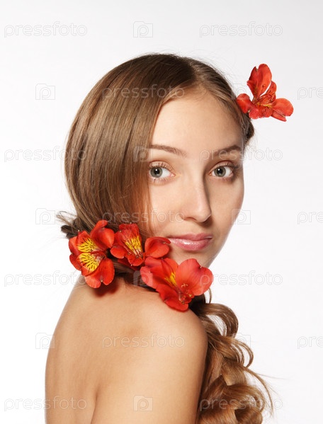 Портрет молодой девушки с цветами в волосах