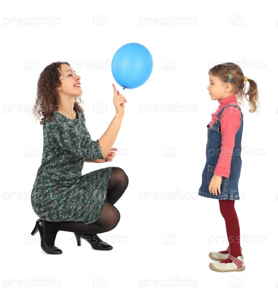Маленькая девочка и ее мать играют с воздушным шаром