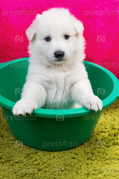Белый щенок швейцарской овчарки