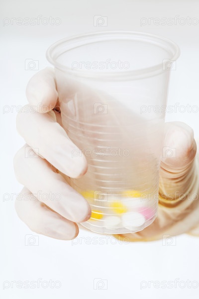 Стакан с таблетками в руке
