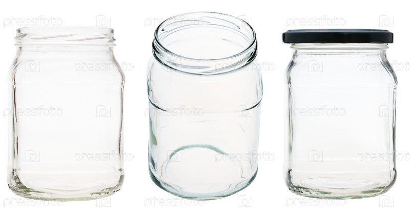 Стеклянные банки на белом фоне