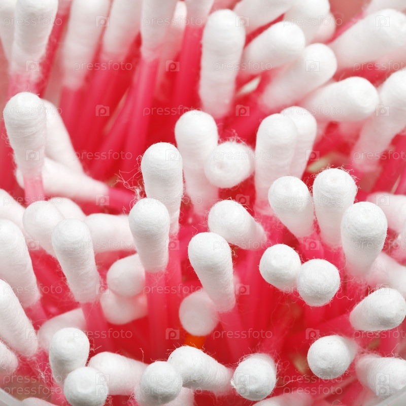 Розовые ватные палочки крупным планом