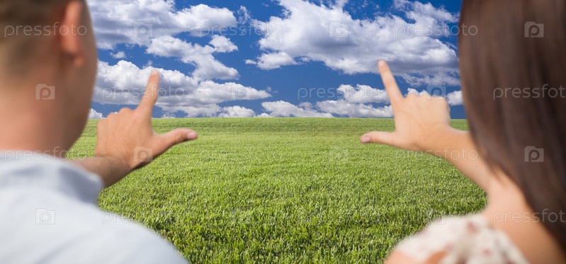 Пара показывает рамку руками на поле