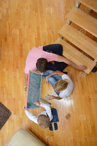 Семья со школьной доской дома