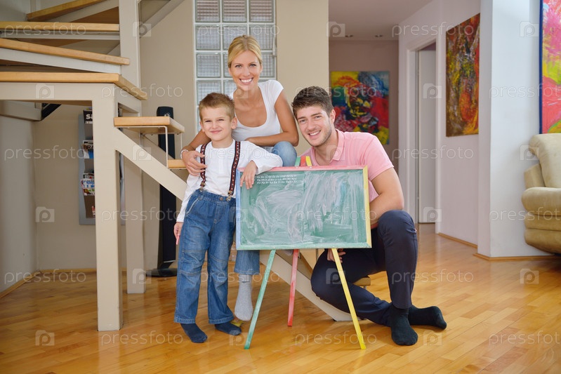 Семья со школьной доской дома