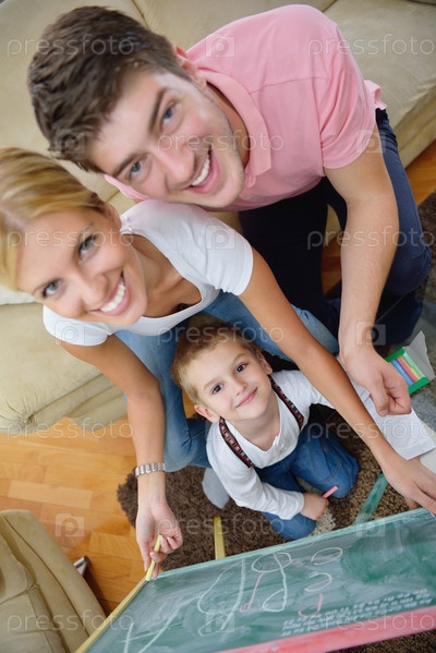 Семья со школьной доской дома