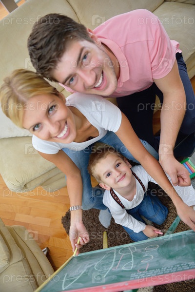 Семья со школьной доской дома