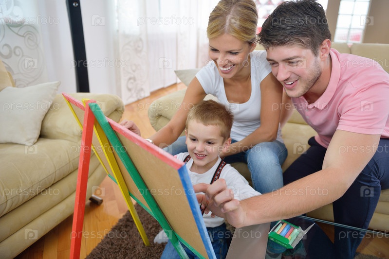 Семья со школьной доской дома