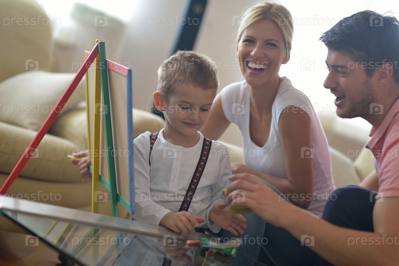Семья со школьной доской дома