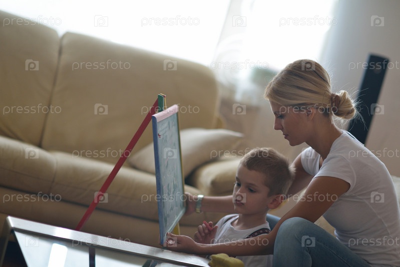 Семья со школьной доской дома