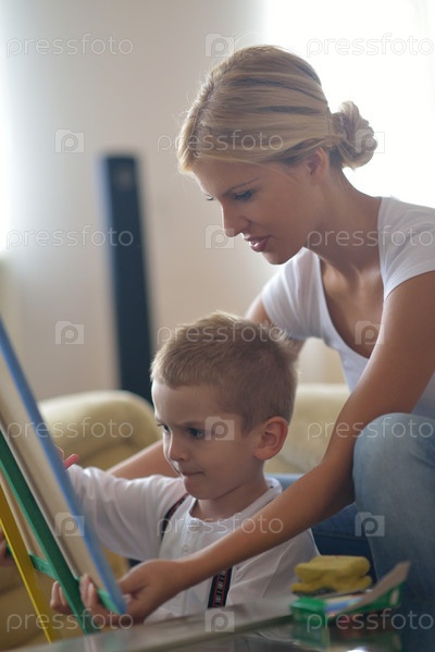Семья со школьной доской дома
