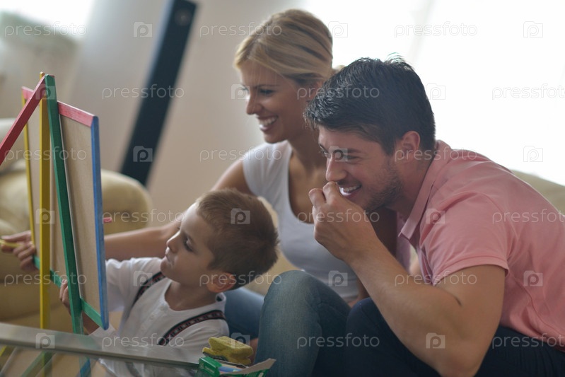 Семья со школьной доской дома