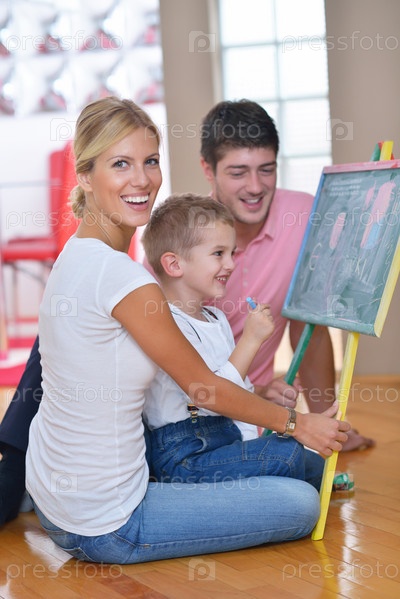 Семья со школьной доской дома