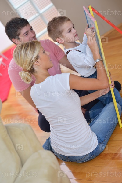 Семья со школьной доской дома