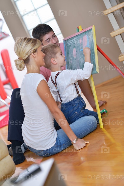 Семья со школьной доской дома