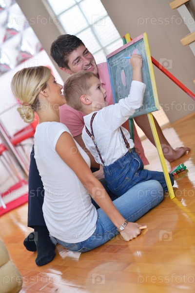 Семья со школьной доской дома