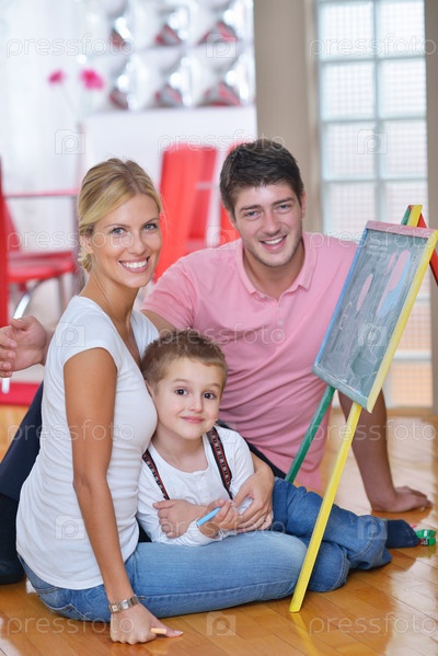 Семья со школьной доской дома