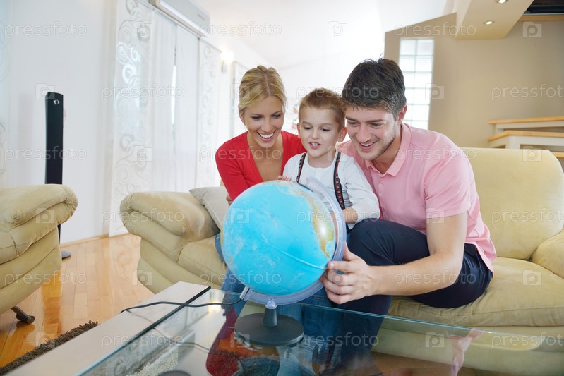 Семья играет с глобусом