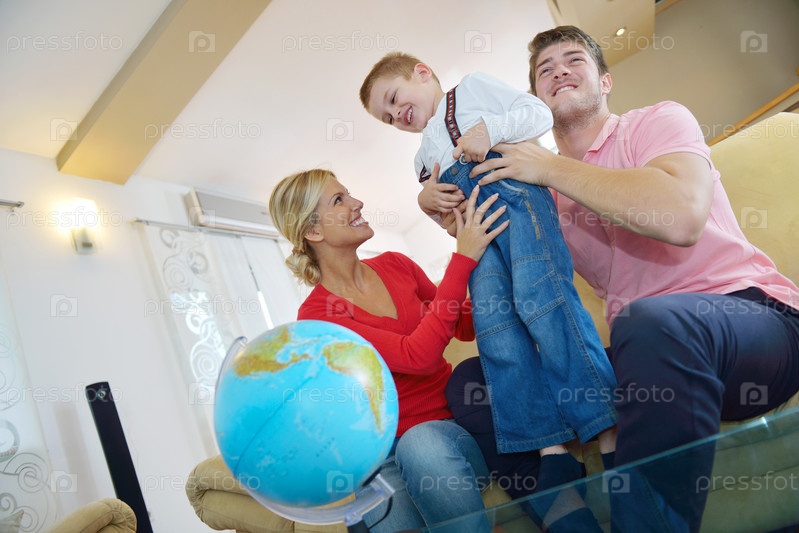 Семья играет с глобусом