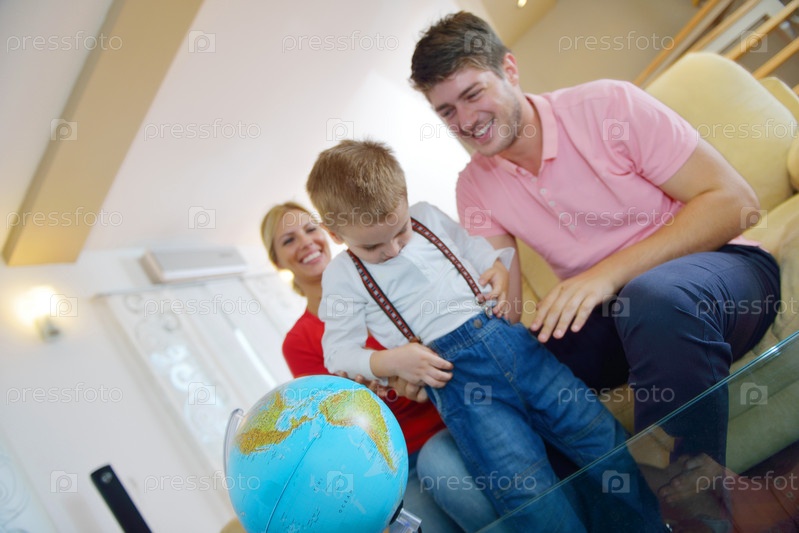 Семья играет с глобусом