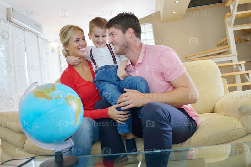 Семья играет с глобусом