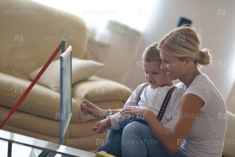 Семья со школьной доской дома