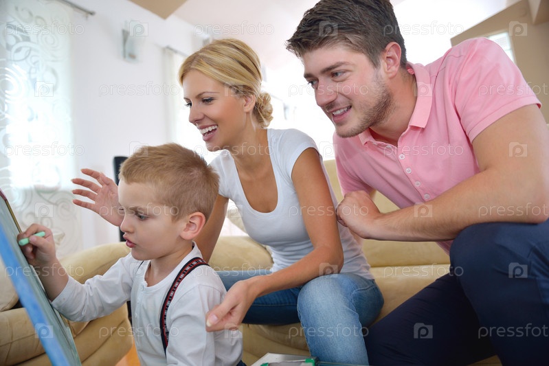 Семья со школьной доской дома