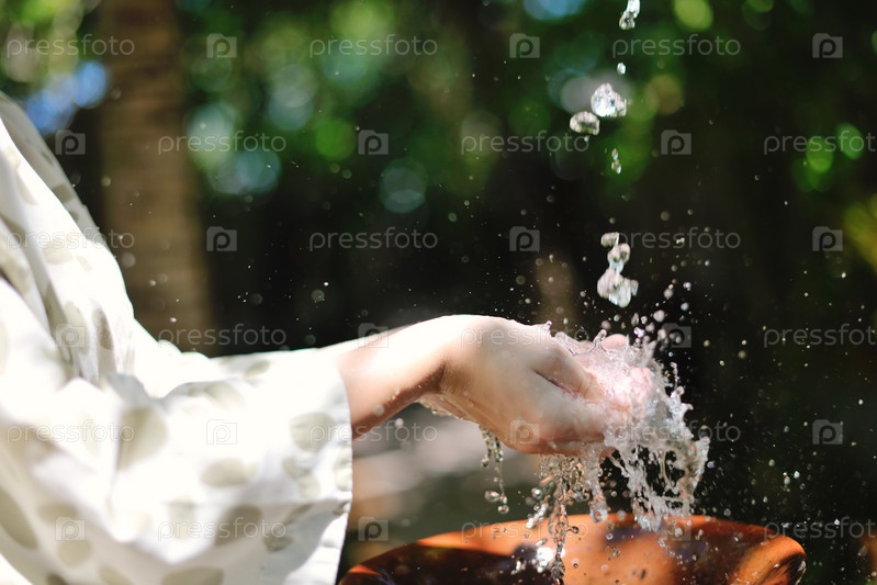 Брызги свежей воды на женских руках