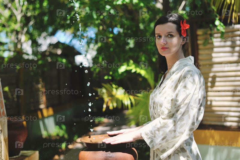 Брызги свежей воды на женских руках