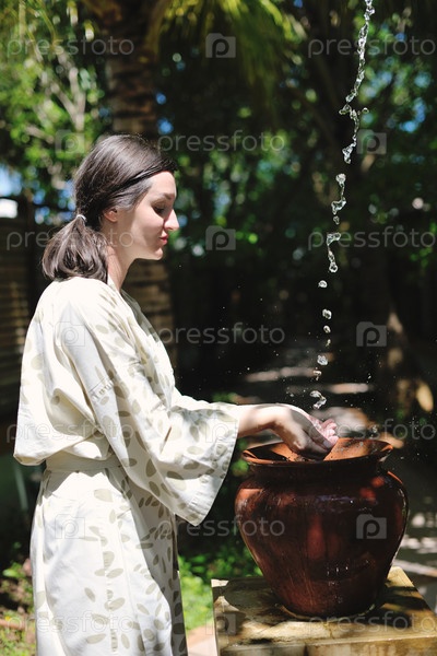 Брызги свежей воды на женских руках