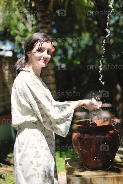 Брызги свежей воды на женских руках