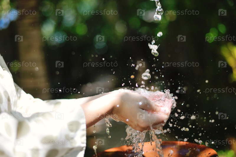 Брызги свежей воды на женских руках