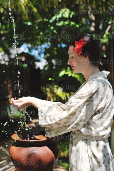 Брызги свежей воды на женских руках