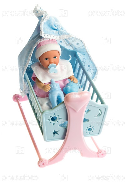 Куколка в колыбели, изолированная на белом фоне