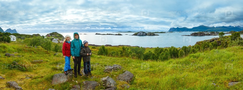 Семья на побережье (Норвегия, полярная ночь)