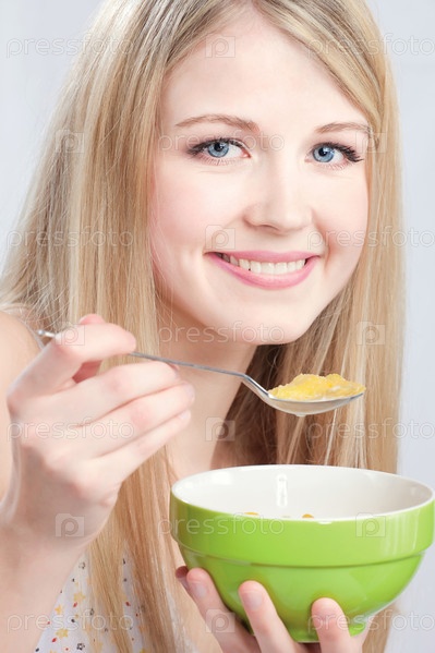 Женщина с тарелкой и ложкой