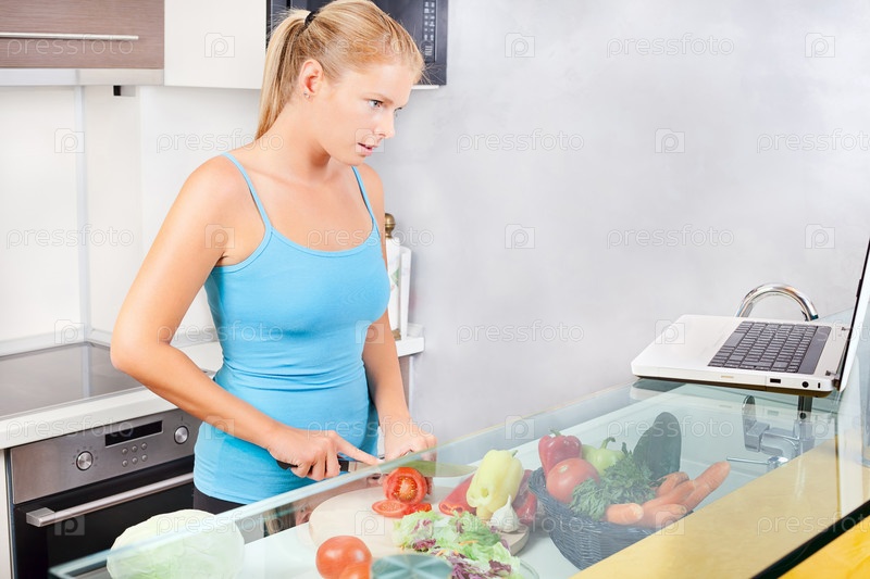 Женщина на кухне с ноутбуком
