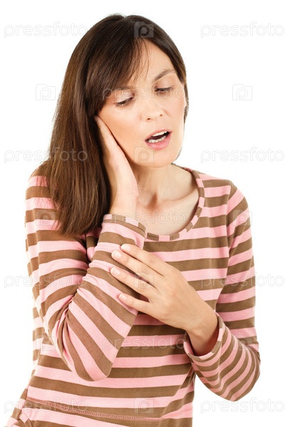 Красивая женщина держится за ухо