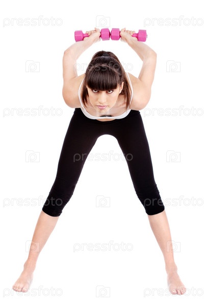 Женщина делает упражнения, изолированная на белом фоне