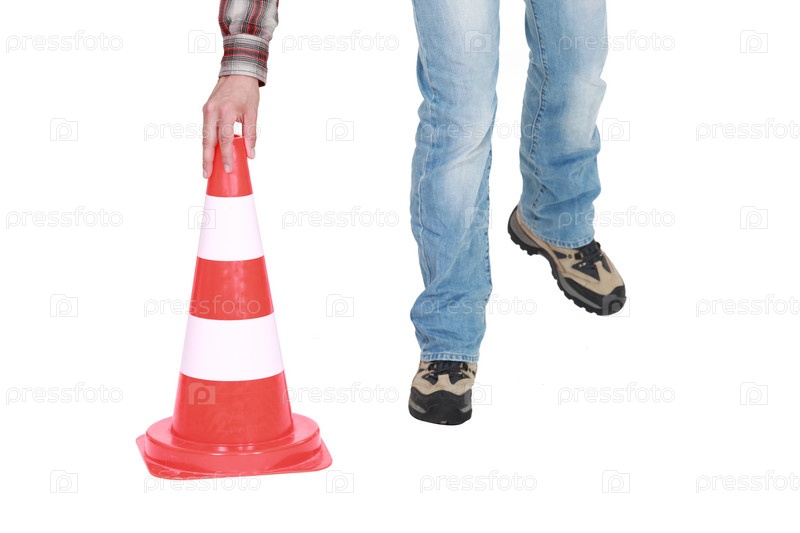 Установка дорожного конуса