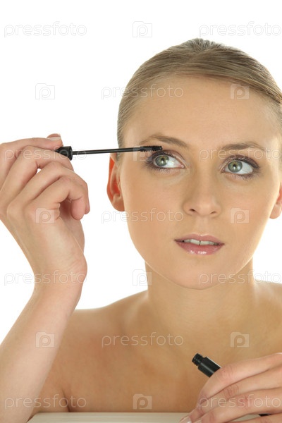 Женщина наносит макияж