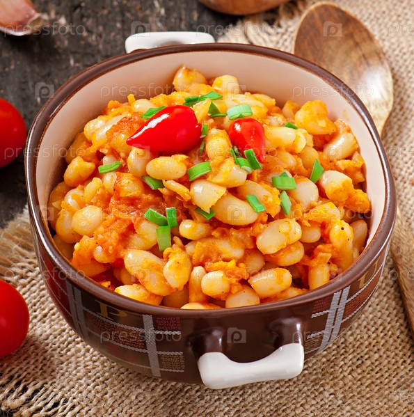 Вареная фасоль с помидорами и острым перцем